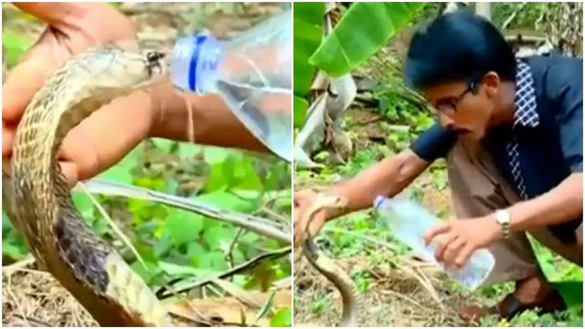 कोबरा सांप का नाम सुनते ही लोग डर जाते हैं, लेकिन सोशल मीडिया पर एक वीडियो वायरल हो रहा है, जिसमें एक शख्स उसे बोतल पानी पिलाता दिख रहा है। यही नहीं प्यासा कोबरा बेहद आराम से इस पानी को पीता नजर आ रहा है। इस वीडियो को भारतीय वन सेवा के अधिकारी सुशांत नंदा ने अपने ट्विटर अकाउंट पर शेयर किया है।