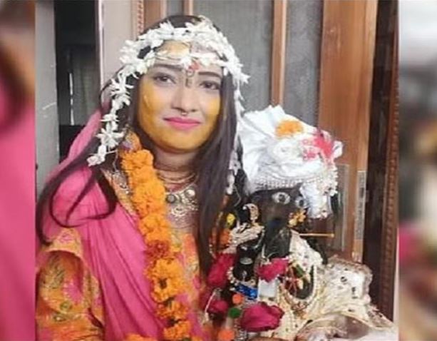 सिरसा: वृंदावन नें हुई एक शादी लोगों के बीच चर्चा का विषय बन गई है। यह अनोखी शादी हरियाणा के सिरसा की रहने वाली ज्योति ने की है। वह पेश से नर्स हैं और बीते एक साल से वृंदावन में रहकर भगवान कृष्ण की भक्ति कर रही है। दरअसल, ज्योति ने अपने प्रिय लड्डू गोपाल से शादी कर ली है। यानी वह भगवना कृष्ण के साथ शादी के बंधन में बंध गई हैं।