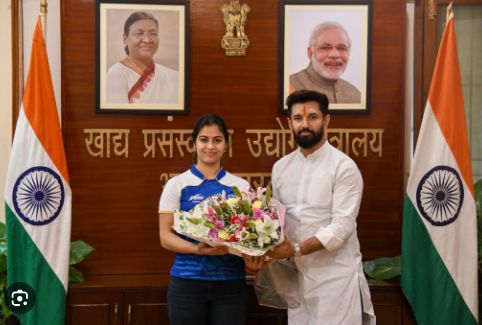 पेरिस ओलंपिक में 2 कांस्य पदक जीतने वाली मनु भाकर से मिले केंद्रीय मंत्री चिराग पासवान