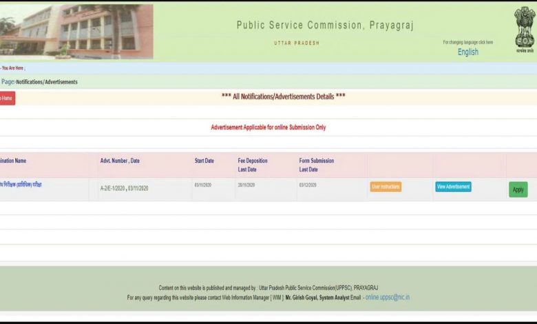 UPPSC Recruitment 2020, Sarkari Naukri 2020: उत्तर प्रदेश पब्लिक सर्विस कमीशन ने रीजनल इंस्पेक्टर (टेक्निकल) एग्जाम 2020 के लिए आधिकारिक नोटिफिकेशन जारी कर दिया है. इच्छुक उम्मीदवार 03 नवंबर से 03 दिसंबर तक ऑनलाइन आवेदन कर सकते हैं, जबकि फीस जमा करने की लास्ट डेट 28 नवंबर है. आवेदन करने के इच्छुक उम्मीदवार आधिकारिक वेबसाइट uppsc.up.nic.in पर जारी नोटिफिकेशन में दी गई सभी डीटेल्स चेक कर ऑनलाइन माध्यम से आवेदन कर सकते हैं.