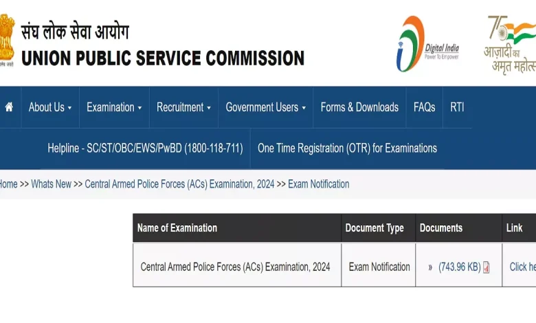यूपीएससी सीएपीएफ असिस्टेंट कमांडेंट भर्ती के लिए नोटिफिकेशन जारी