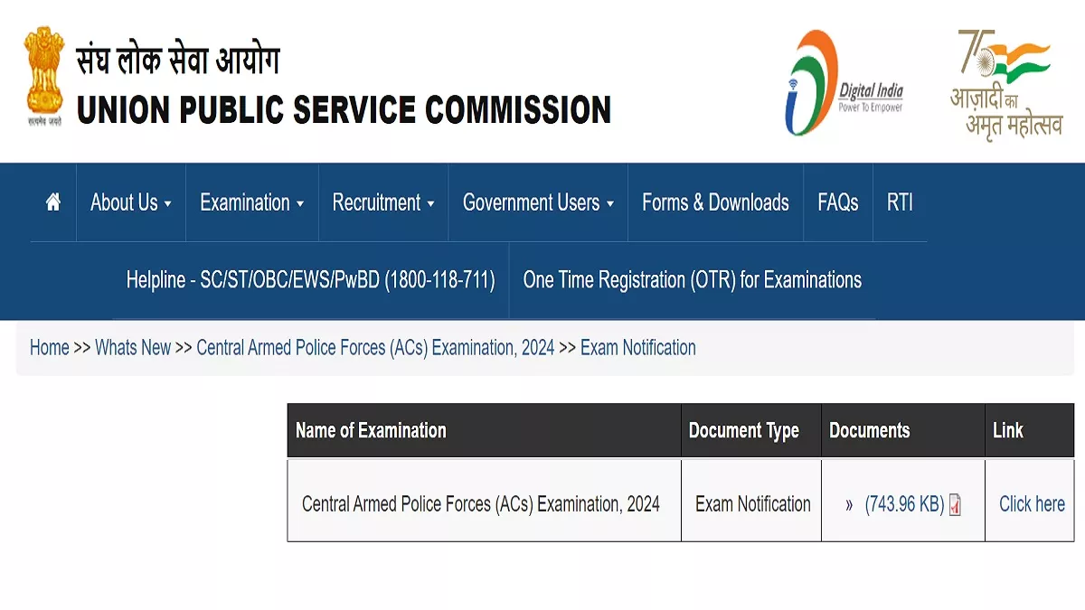 यूपीएससी सीएपीएफ असिस्टेंट कमांडेंट भर्ती के लिए नोटिफिकेशन जारी