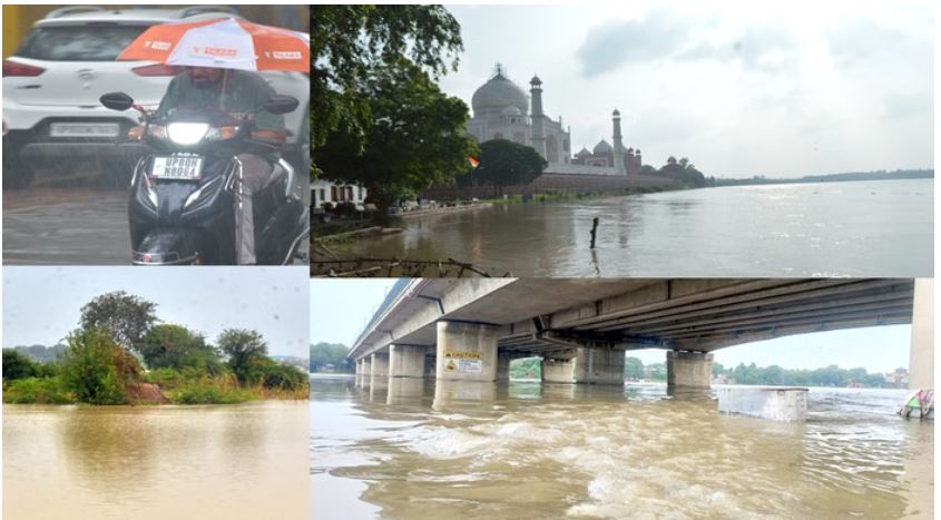 आगरा में हुई तेज बारिश से तापमान करीब पांच डिग्री तक गिर गया। वहीं यमुना नदी का जलस्तर 496.1 फीट तक पहुंच गया, जो खतरे के निशान से 1.1 फीट ऊपर है। पानी ताजमहल के पीछे बने पार्क तक घुस आया है। नगर निगम ने घाटों के आसपास कर्मचारियों को तैनात कर 24 घंटे निगरानी शुरू कर दी है।