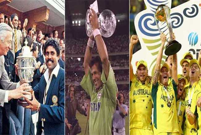 वेस्टइंडीज ने 1975 में ऑस्ट्रेलिया और 1979 में इंग्लैंड को हराकर लगातार दो बार विश्व चैम्पियन टीम बनी 1983 में भारत ने वेस्टइंडीज को हराकर वर्ल्डकप अपने नाम किया 1987 में ऑस्ट्रेलिया ने इंग्लैंड को पटखनी देकर जीता विश्व कप 1992 में पाकिस्तान इंग्लैंड को हराकर विश्व विजेता बना 1996 में श्रीलंका ने ऑस्ट्रेलिया को मात देकर विश्व कप को खिताब अपने नाम किया ऑस्ट्रेलिया ने 1999 में पाकिस्तान, 2003 में भारत तथा 2007 में श्रीलंका को हराकर लगातार तीन विश्व कप अपने नाम किए 2011 में भारत ने श्रीलंका को पीटकर दूसरी बार विश्व चैम्पियन बना 2015 में ऑस्ट्रेलिया ने न्यूज़ीलैंड को मात देकर पांचवीं बार विश्व कप अपने नाम किया